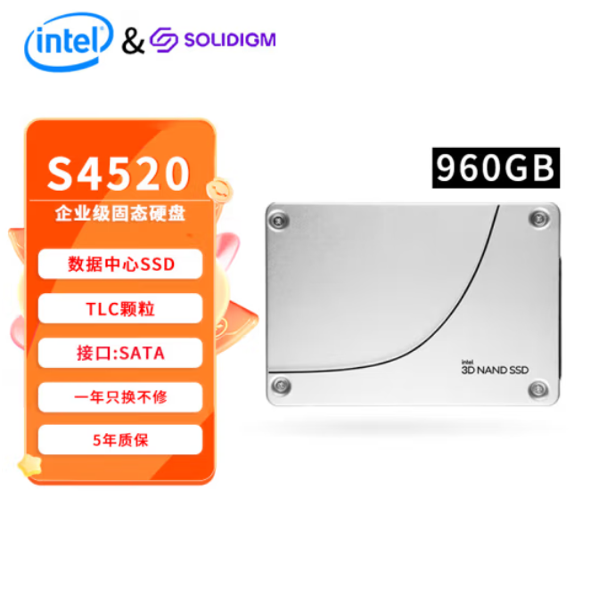 英特尔(Intel)企业级数据中心固态硬盘SATA3接口 2.5英寸 S4520 960GSKU:yzwhyp957187