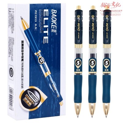 宝克(BAOKE)PC1913 0.5mm按动蓝黑色中性笔子弹头水笔签名笔处方笔 12支/盒SKU:yzwhyp957339