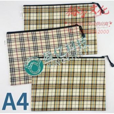 A4帆布文件袋拉链式格子布料资料袋SKU:yzwhyp957369