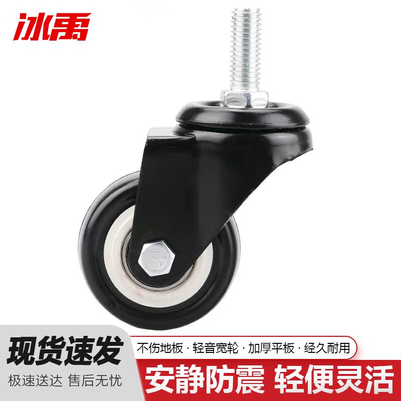 冰禹 轻音耐磨脚轮 金钻轮橡胶平板轮 2寸丝杆M10万向轮(2只装)SKU:yzwhyp957448