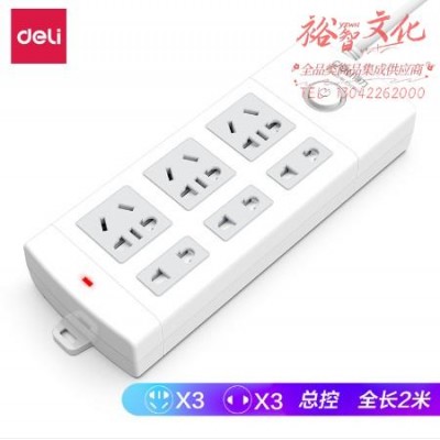 得力18208插座_3 3_2米_PVC袋装(白)(只) .SKU:yzwhyp957494