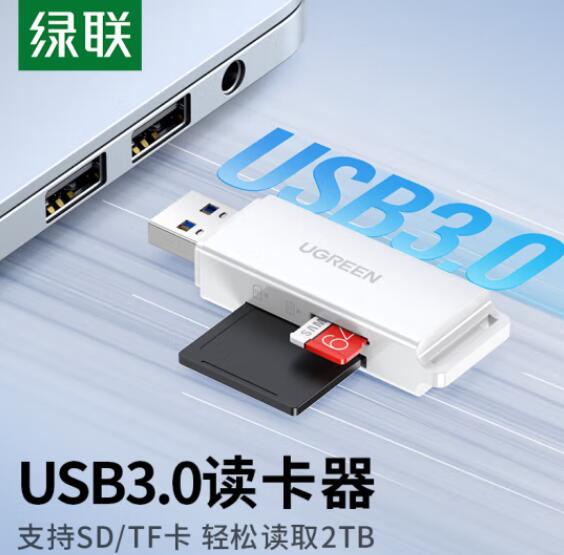 绿联(UGREEN)40751 USB3.0高速 双卡槽设计多功能SD/TF二合一读卡器SKU:yzwhyp957618