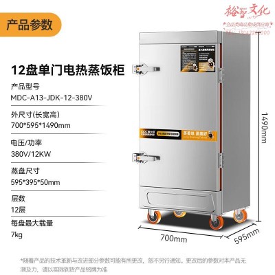 麦大厨蒸饭柜商用蒸箱食堂餐厅厨房蒸饭车全自动蒸馒头蒸包子电蒸柜12盘 380V 12kW MDC-A13-JDK-12-380V SKU:yzwhyp957807