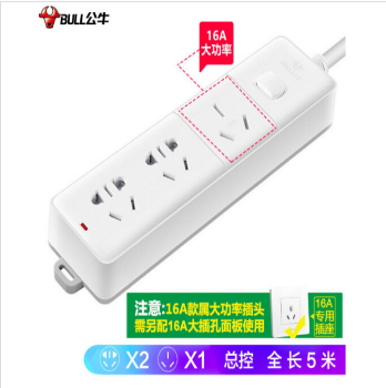 公牛(BULL)GN-406D插座 3位总控5米SKU:yzwhyp958104