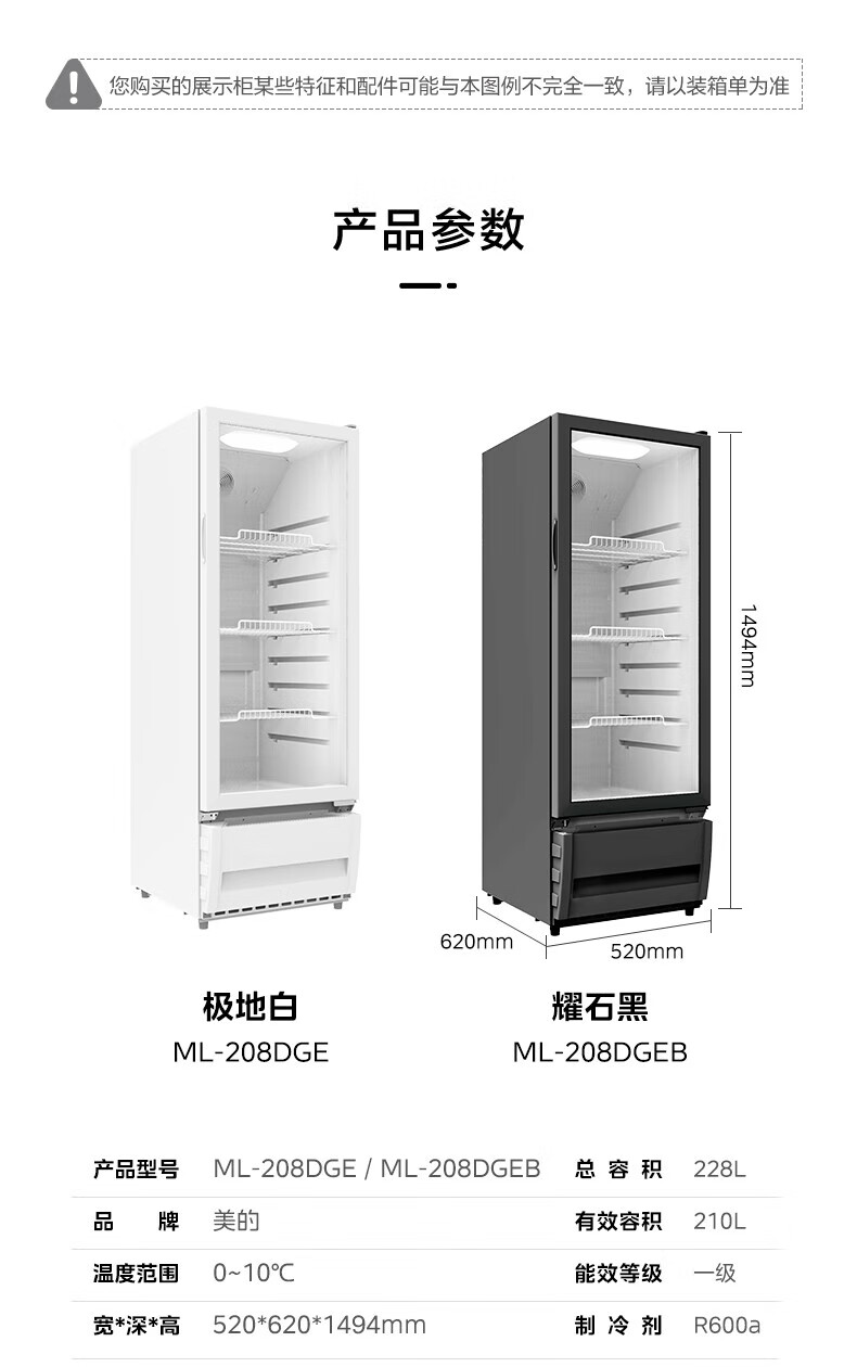 美的(Midea) 展示柜立式冷藏冰柜保鲜双层玻璃门冷藏柜 228升SKU:yzwhyp958163