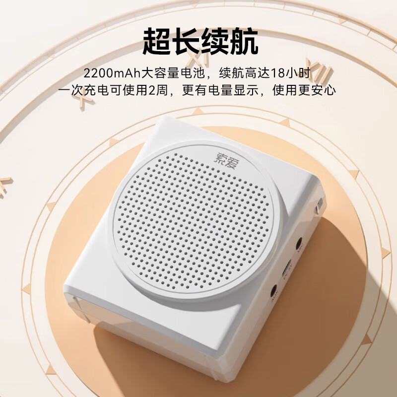 首页 > 广播、电视、电影设备 > 音频设备 > 扩音设备 > 索爱(soaiy)S638小蜜蜂扩音器教师专用18W大功率智能防啸叫300S一键录音麦克风喇叭教学导游导购喊话Type-c 白SKU:yzwhyp958404