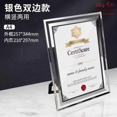 亚克力奖状 授权书外壳 A4银色双边款 横竖两用SKU:yzwhyp958447