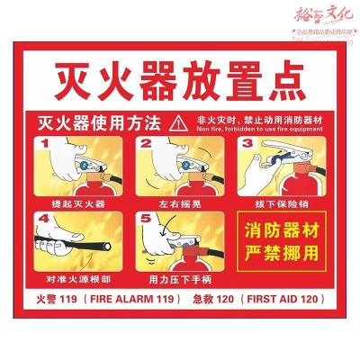 灭火器放置点消火栓消防栓手推灭火器使用方法标识标牌指示贴纸 50*40cm 竖版大号发光标志、铭牌SKU:yzwhyp958450