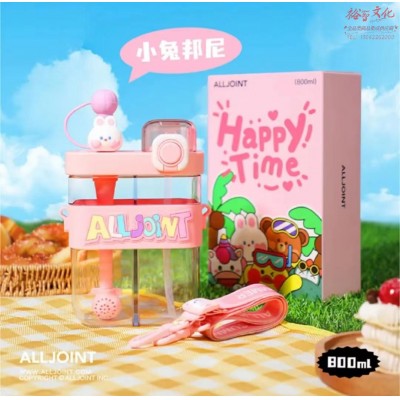 ALL-JOINT夏季双饮杯分仓杯儿童水杯塑料吸管杯创意水杯800ml兔子SKU:yzwhyp958518