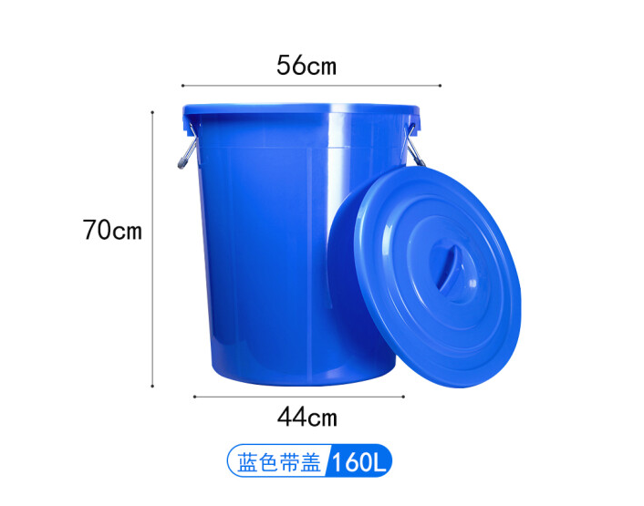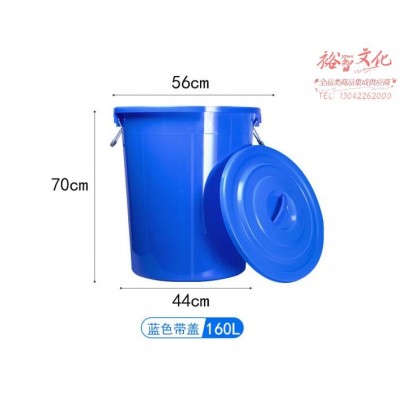 大号圆桶塑料水桶加厚储水桶 酒店厨房工业环卫物业垃圾桶 发酵桶 160升带盖(蓝色)SKU:yzwhyp958622