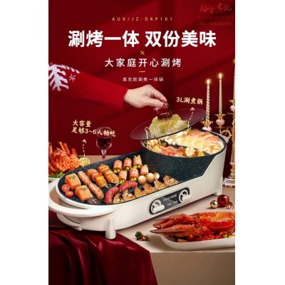 奥克斯(AUX)电烤炉 电烧烤炉 多功能锅鸳鸯电火锅 家用无烟电烤炉 电烤盘 烤涮一体两用锅SKU:yzwhyp958820