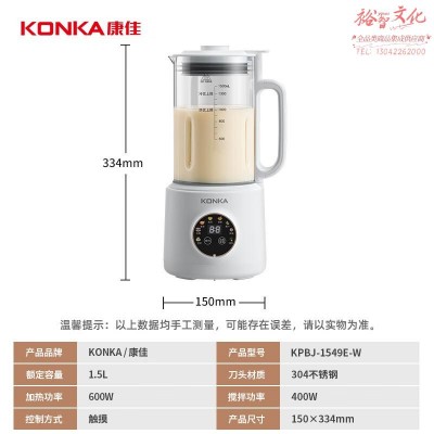 康佳(KONKA)破壁机 家用迷你豆浆机全自动多功能加热免滤打米糊辅食机小型料理机榨汁机果汁机 KPBJ-1549E-WSKU:yzwhyp958843
