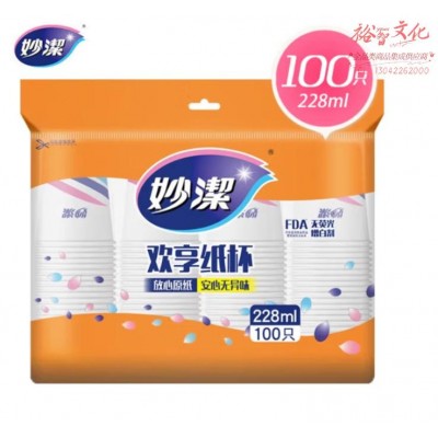妙洁纸杯 一次性纸杯子 家用商用不渗水不漏水加厚水杯 228ML欢享纸杯一包100只SKU:yzwhyp959050