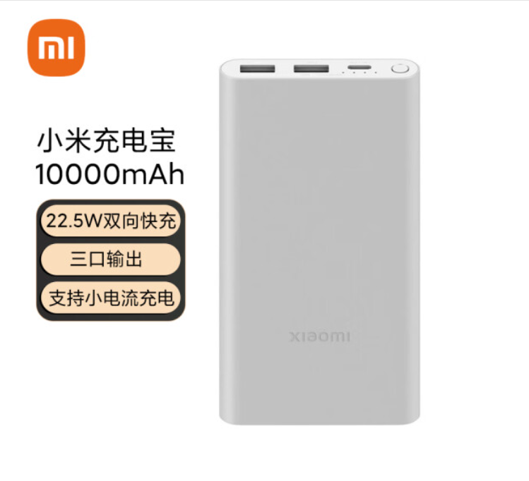 小米充电宝 10000mAh 22.5W 移动电源 苹果20W充电 双向快充 多口输出 PD快充 银色SKU:yzwhyp959093