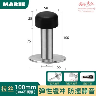 免打孔新款防撞门挡器门顶门碰入户门防撞神器加长门后门阻器 304不锈钢实心圆头 100mm1个SKU:yzwhyp959124