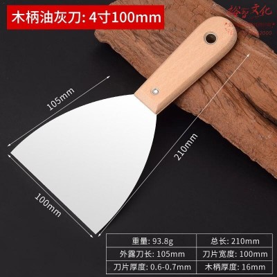 加厚不锈钢油灰刀填缝小铲刀清洁刮刀抹刀腻子灰刀油漆批刀抹泥刀 木柄油灰刀4寸(口宽100mm)SKU:yzwhyp959140
