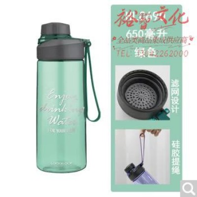 乐扣乐扣 LOCKamp;LOCK HLC690 塑料户外便携大容量运动水杯 提绳带茶隔杯子 绿色650mlSKU:yzwhyp959471