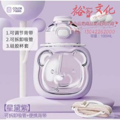 吸管水杯塑料杯 耐高温 随身杯 不漏水紫色1000mlSKU:yzwhyp959520