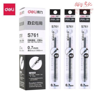 得力(deli) S761 0.7mm中性笔笔芯子弹头替芯 黑色20支/盒SKU:yzwhyp959576