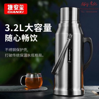 GIANXI 不锈钢热水瓶 家用保温暖瓶大容量保温壶学生宿舍暖壶开水瓶 【加厚款】不锈钢本色3200mlSKU:yzwhyp959596