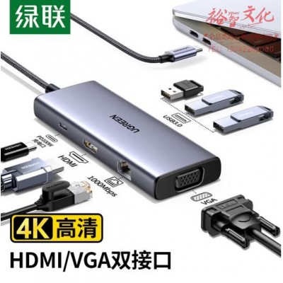 绿联15599 Type-C扩展坞 千兆网线转接口USB网卡拓展坞读卡器HDMI/VAG转C口 通用笔记本电脑扩展器SKU:yzwhyp959712