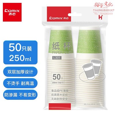 齐心(Comix)加厚一次性水杯/纸杯 50个装250ml 9盎司 办公用品 工具 L301SKU:yzwhyp959908