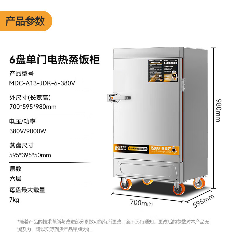 首页 > 用具 > 炊事机械 > 麦大厨蒸饭柜商用蒸箱食堂餐厅厨房蒸饭车全自动蒸馒头蒸包子电蒸柜6盘 380V 9kW MDC-A13-JDK-6-380V yykj-240628140423SKU:yzwhyp960157