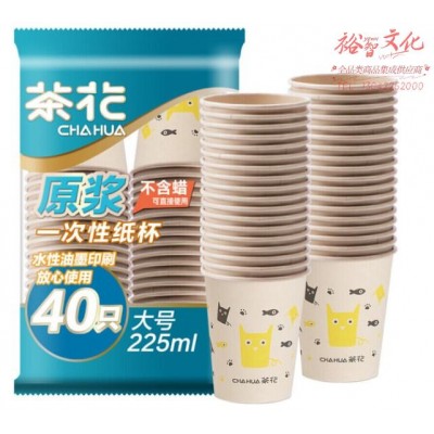 茶花 纸杯一次性杯子原浆水杯40只装大号225MLSKU:yzwhyp960233