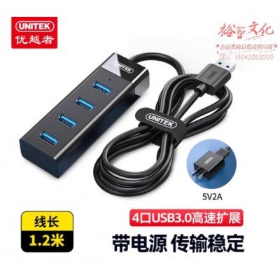 优越者Y-3098CBK USB分线器1米加长线扩展坞带电源3.0高速HUB集线器 SKU:yzwhyp960339