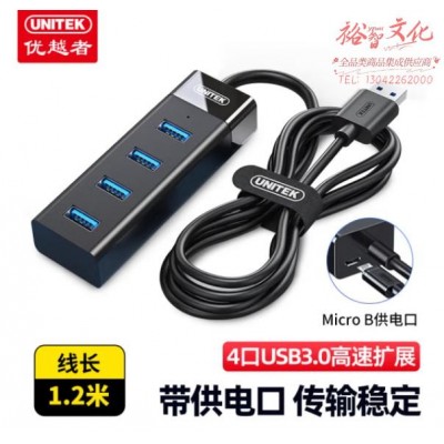 优越者Y-3098BBK USB分线器1米加长线3.0高速4口HUB集线器一拖四多接口usb扩展坞 SKU:yzwhyp960342