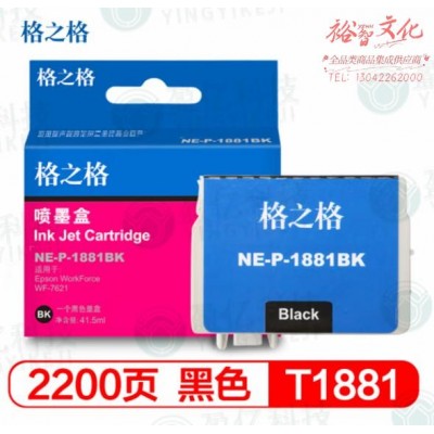 首页 > 办公用品 > 喷墨盒 > 格之格 NE-P-1881BK 黑色墨盒(适用爱普生打印机墨盒WF3641 WF7111 WF7621 WF7218 WF7728 T1881黑色墨盒)SKU:yzwhyp960497