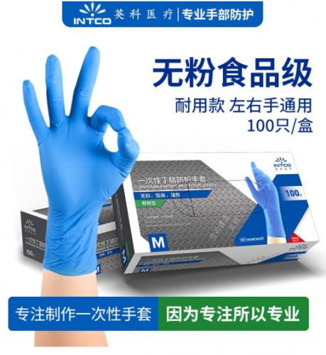 一次性丁腈手套橡胶实验室食品级防水厨房家务餐饮用加厚胶皮手套防滑丁晴洗碗手套 蓝色-耐用型 M#SKU:yzwhyp960708