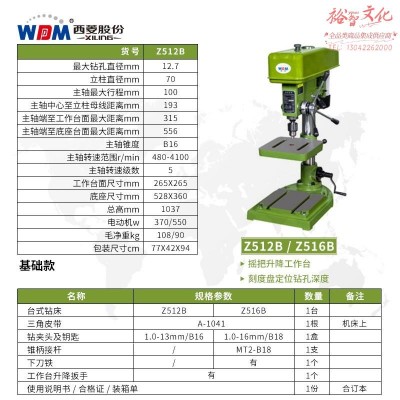 首页 > 建筑建材 > 五金附件 > 西菱工业级台钻高精度重型大功率钢件钻孔机多功能台式三相Z4120 Z512B【380V/550W】SKU:yzwhyp960821