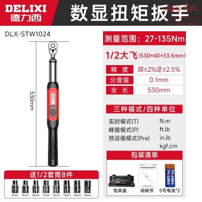 德力西高精度可调式扭力扳手公斤快速力矩火花塞汽修扳手扭矩扳手 【长柄】1/2寸【4.05-135Nm】SKU:yzwhyp960960