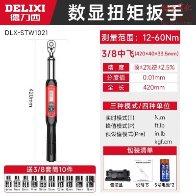 德力西高精度可调式扭力扳手公斤快速力矩火花塞汽修扳手扭矩扳手 【长柄】3/8寸【1.8-60Nm】SKU:yzwhyp960964