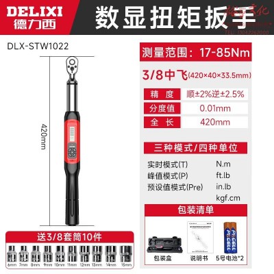 德力西高精度可调式扭力扳手公斤快速力矩火花塞汽修扳手扭矩扳手 【长柄】3/8寸【2.55-85Nm】SKU:yzwhyp960969