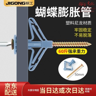首页 > 建筑建材 > 五金附件 > 际工 蝴蝶型空心砖自攻胀塞蝴蝶螺栓 蝴蝶膨胀管带钉50套SKU:yzwhyp961046