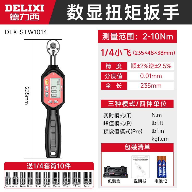 德力西高精度可调式扭力扳手公斤快速力矩火花塞汽修扳手扭矩扳手 【短柄】1/4寸(10Nm)SKU:yzwhyp961066