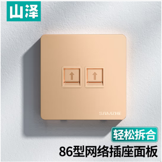 山泽 电脑插座网口网络面板 适用电话信息模块 通用超五/六/七类模块加厚86型面板 双口 金色SZ-MB02JSKU:yzwhyp961120