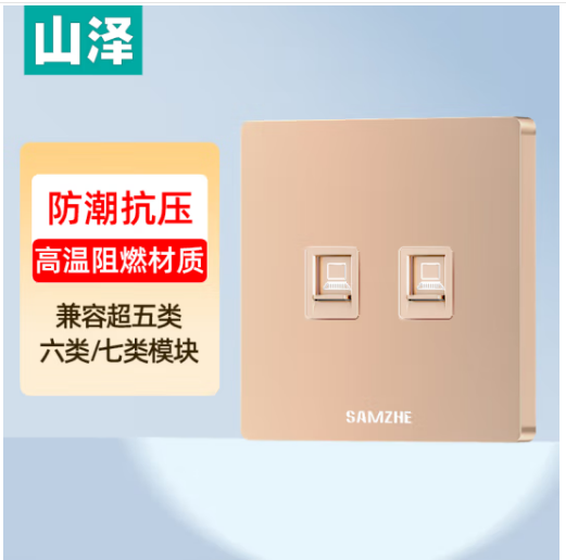 山泽 电脑插座网口网络面板 适用电话信息模块 通用超五/六/七类模块加厚86型面板 双口 金色XMB-J02SKU:yzwhyp961122