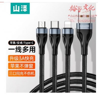 山泽 三合一快充数据线一拖三充电线支持苹果iphone华为oppo/vivo充电 安全快充1.2米 AS12ASKU:yzwhyp961190