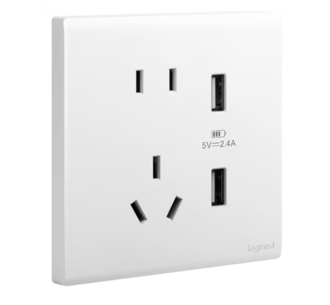 罗格朗(LEGRAND)开关插座 简悦系列陶瓷白色 86型墙壁插座 10A五孔带双USB插座F6/426/10US/U2 SKU:yzwhyp961215