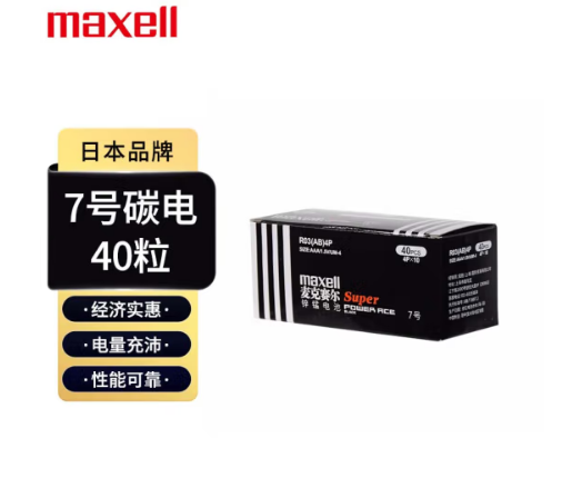 麦克赛尔 Maxell 7号电池40粒碳性电池 适用于玩具/遥控器/鼠标键盘/闹钟/计算器等七号R03/AAA干电池 SKU:yzwhyp961216