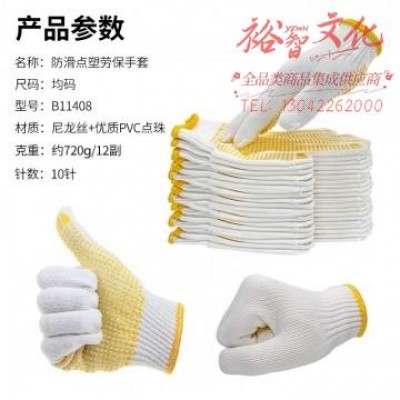 新越昌晖点胶点塑手套 劳保手套加厚耐磨防滑涂胶手套工地工作棉纱线手套男女均码12副/打SKU:yzwhyp961283