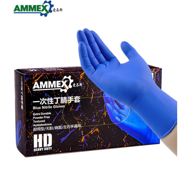 爱马斯(AMMEX)一次性丁腈手套加厚丁晴食品清洁检查防水防滑工作防护厨房劳保APFNCHD46100 L大号SKU:yzwhyp961297