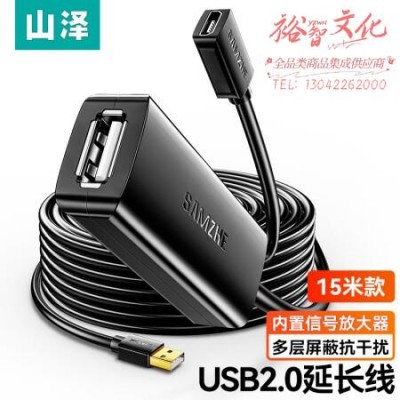 山泽(SAMZHE)FD-15U USB延长器/公对母延长线usb2.0 AM/AF工程级内置超强芯片带DC供电接口 15米SKU:yzwhyp961354
