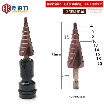 伸缩电动扳手转换头 含钴4-20阶梯钻 伸缩电扳转换头SKU:yzwhyp961520
