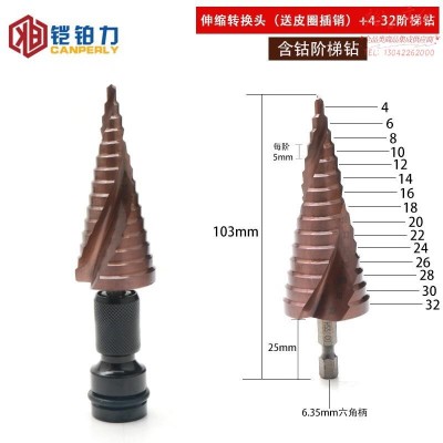 伸缩电动扳手转换头 含钴4-32阶梯钻 伸缩电扳转换头SKU:yzwhyp961530