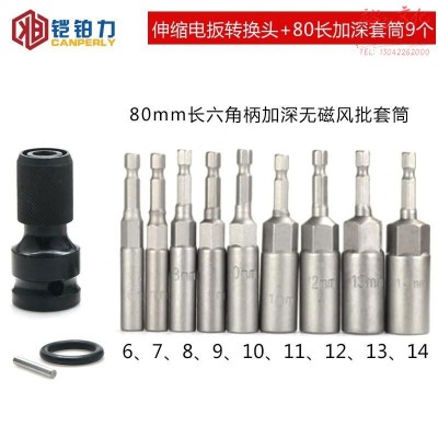伸缩电动扳手转换头 伸缩转换头(配皮圈和插销) 80mm加深套筒9个SKU:yzwhyp961609