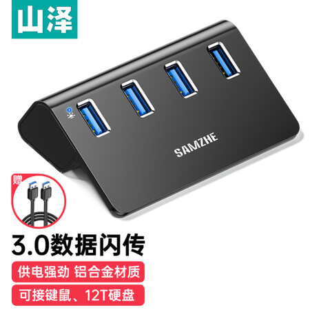山泽(SAMZHE)JXQ-H04 USB分线器3.0高速HUB扩展坞拓展坞集线器苹果笔记本电脑一拖四拓展转换器延长线全铝SKU:yzwhyp961837